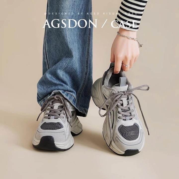 奥古狮登灰色老爹鞋女2025新款秋冬季厚底运动鞋百搭增高小个子爆