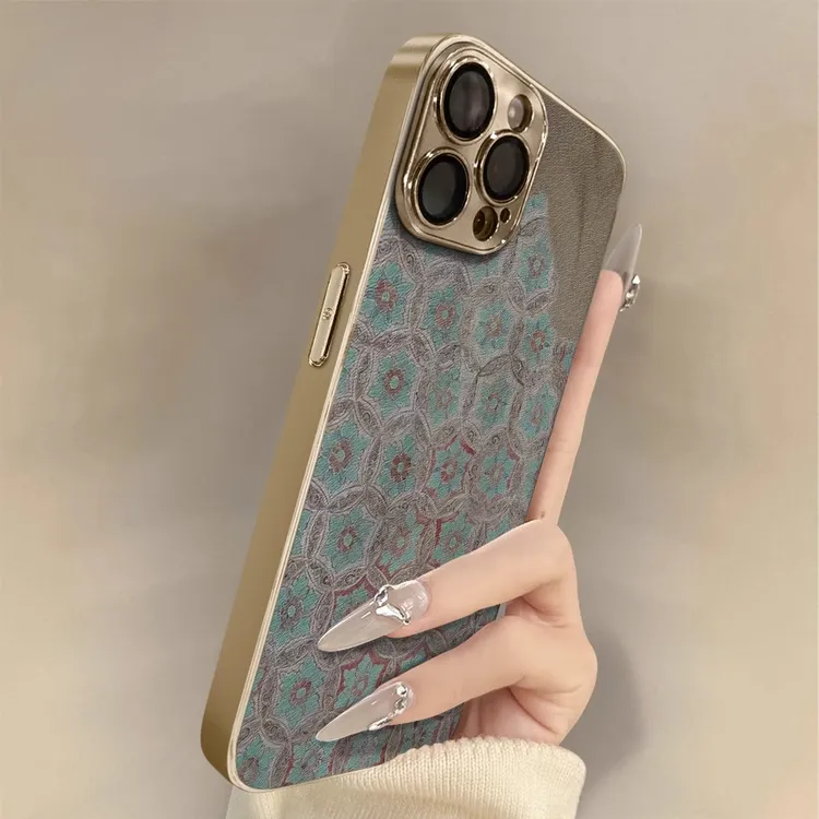 【进口小羊皮】适用苹果16promax手机壳敦煌花纹彩绘iphone17promax