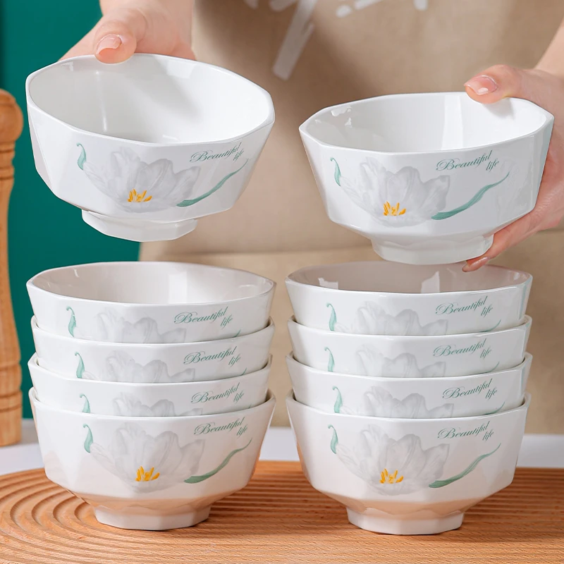 夏日雨荷4.5英寸8个装米饭碗家用陶瓷餐具中式吃饭碗防烫中式碗