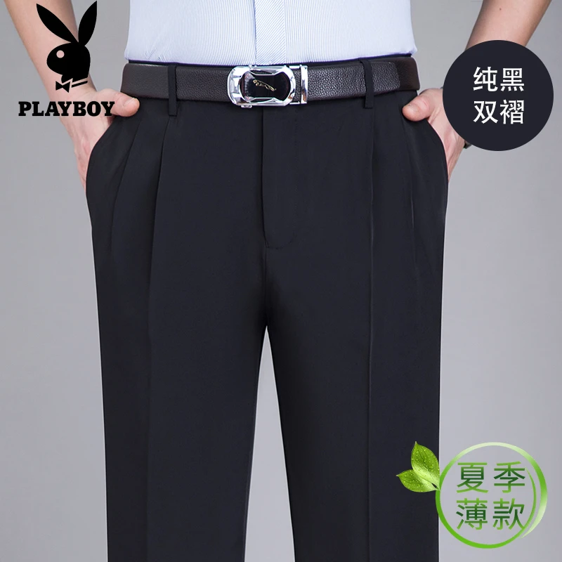 花花公子2025夏季冰丝西裤宽松直筒男士商务休闲男裤垂坠感大脚口